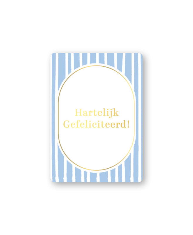 Cadeaukaart A7: Hartelijk gefeliciteerd (blauwe strepen)Cadeaukaart A7: Hartelijk gefeliciteerd (blauwe strepen)